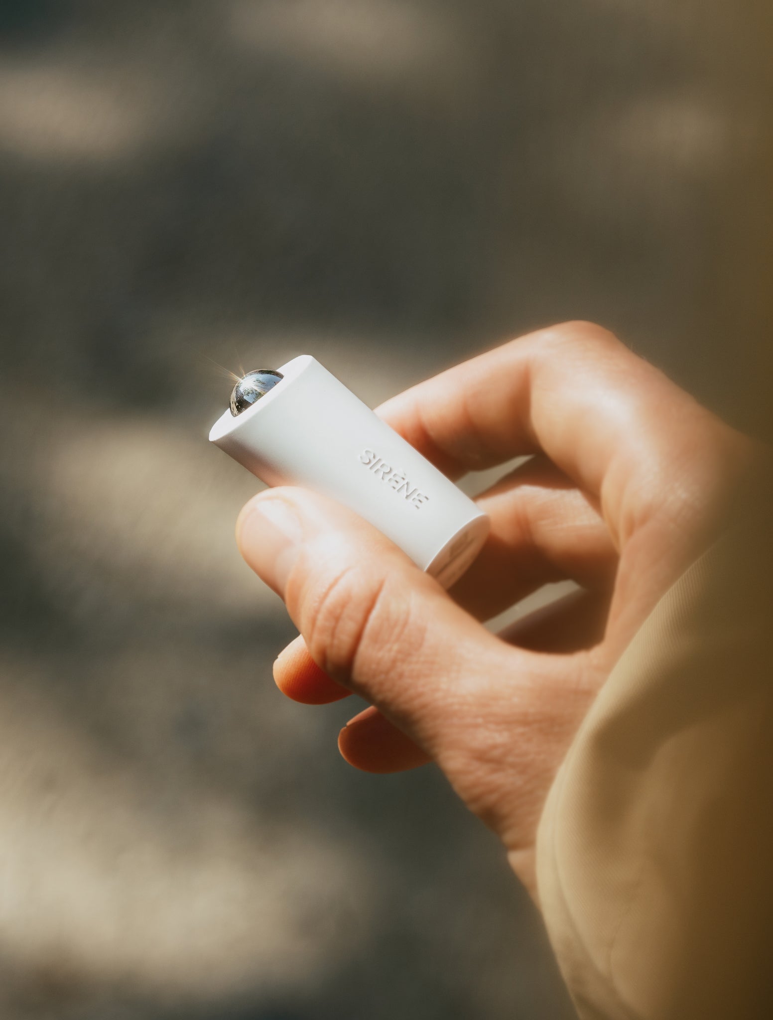 Sirène ist ein kleiner Sicherheitsalarm, den du ganz einfach an deinem Schlüsselbund, in der Handtasche, deiner Hosentasche oder in deiner Hand transportieren kannst. Wenn du dich in einer unsicheren Situation befindest, kannst du Sirène mit einem festen Druck auf die Metallkugel aktivieren. Daraufhin vibriert das Gerät und gibt ein weißes Licht um die Metallkugel ab, das anzeigt, dass es aktiviert wurde.