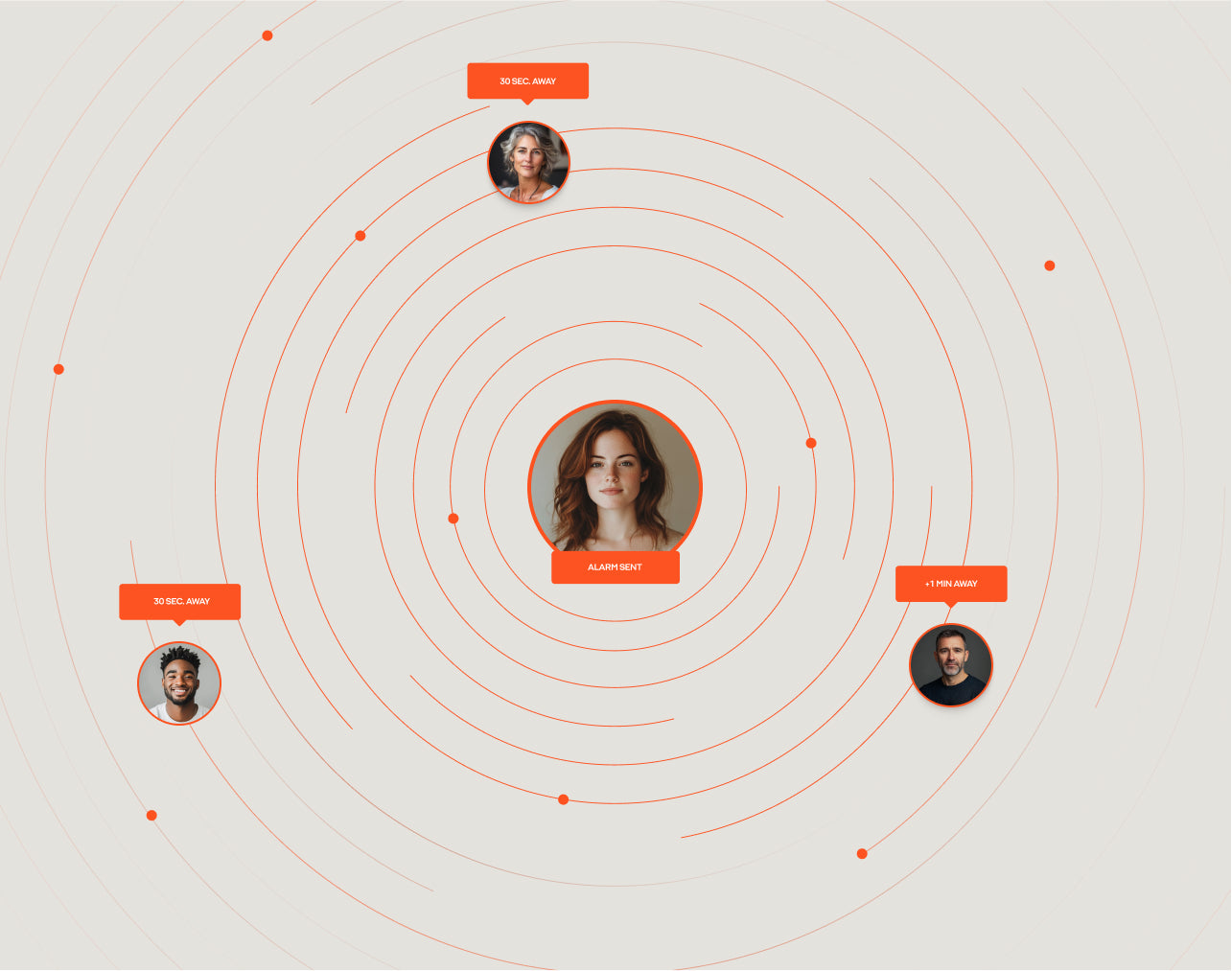 Nein. Wenn du einen Alarm auslöst, werden nur deine ausgewählten Kontakte informiert. Sobald sie den Alarm annehmen, zeigt ihnen die App den schnellsten Weg zu deinem aktuellen Standort. Falls notwendig, können sie vor Ort entscheiden, die Polizei zu rufen.